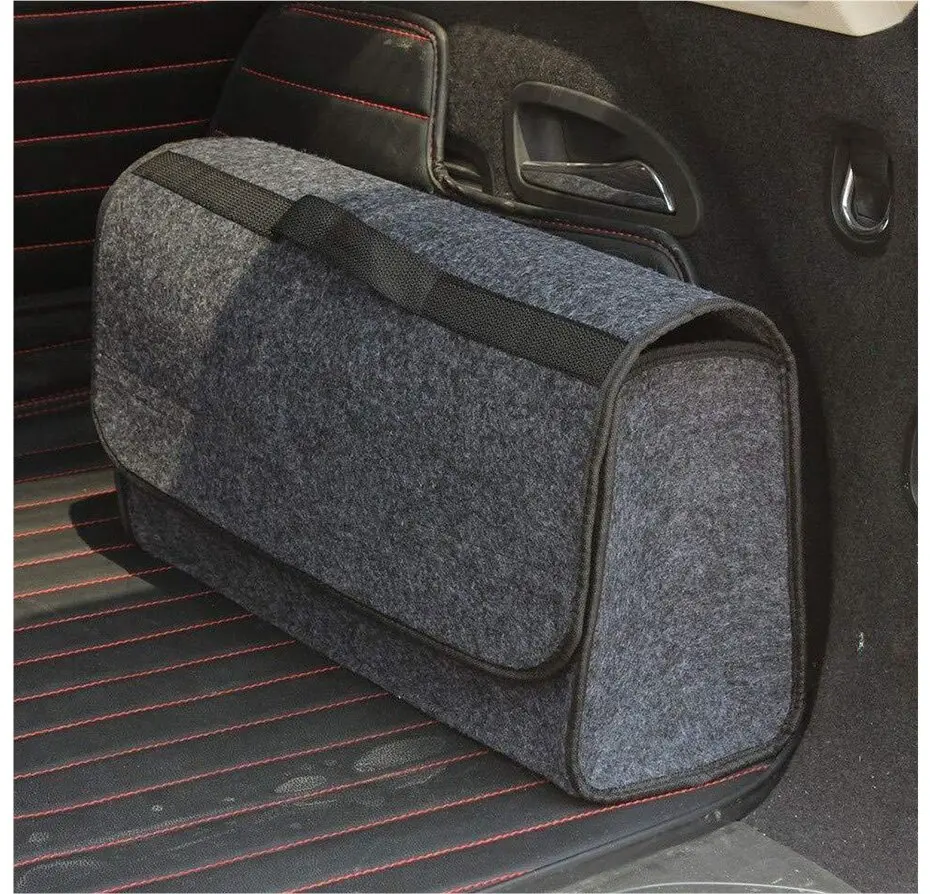 Ta torba z filcu to doskonały sposób na uporządkowanie drobiazgów w bagażniku – od narzędzi po środki czystości.